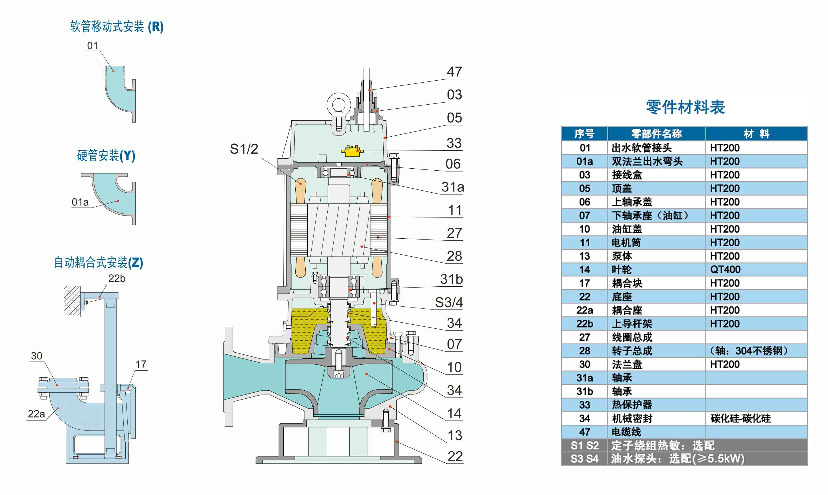 WQ系列双流道潜水排污泵结合了国内外同类优秀产品,经过PCAD软件优化设计而成,在水力模型、结构、密封、冷却和保护控制等方面进行了综合优化和创新设计。叶轮为双流道设计,有较大的进口和出口宽度,无堵塞性能好,高效节能,安全可靠,寿命长。